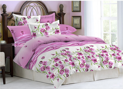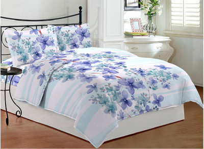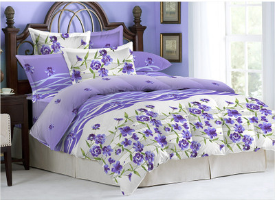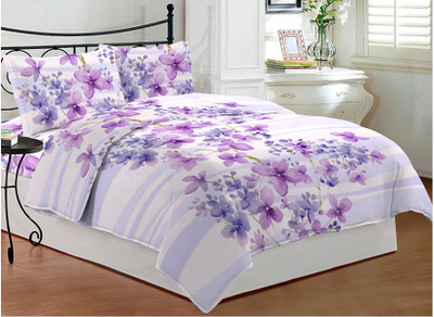 Bombay Dyeing Cotton Floral Double Bedsheet 2 Pillow Covers, 1 Double Bedsheet, White||Lavendar- Flipkart Home Decor & Accessories Online