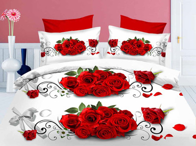 Dexim Polyester Silk Blend Floral Double Bedsheet Bed Sheet With Two Pillow Cover, White, Red- Flipkart Home Decor & Accessories Online
