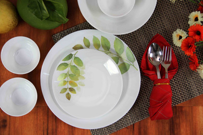 Give a refreshing touch to your daily dining experience with this Diva Ivory Autumn Shadow dinner set from La Opala, which features delicate leaves on a sparkling white background. Crafted out of fine-quality glass, this set is great for your daily family meals, as well as for entertaining guests.