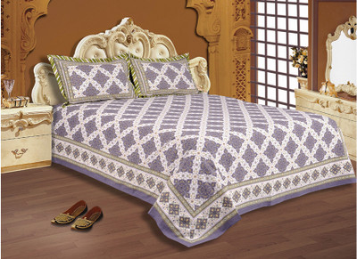 Salona Bichona Cotton Printed Double Bedsheet 1 Bedsheet, 2 Pillow Covers, Purple||White||Green- Flipkart Home Decor & Accessories Online