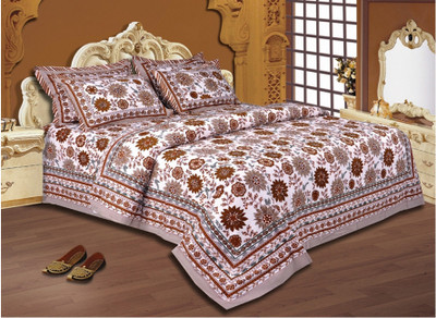 Salona Bichona Cotton Floral Double Bedsheet 1 Bedsheet, 2 Pillow Covers, Brown- Flipkart Home Decor & Accessories Online