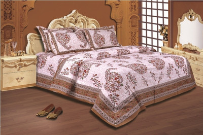 Salona Bichona Cotton Printed Double Bedsheet 1 Bedsheet, 2 Pillow Covers, Beige||Pink||Blue- Flipkart Home Decor & Accessories Online