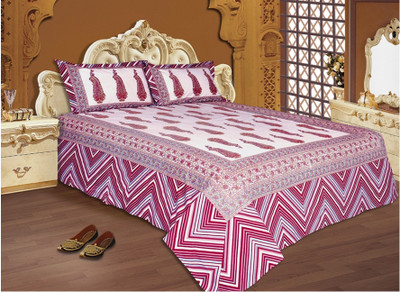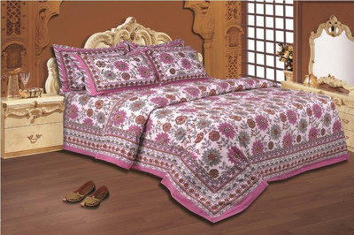 Salona Bichona Cotton Printed Double Bedsheet 1 Bedsheet, 2 Pillow Covers, Pink||White||Red- Flipkart Home Decor & Accessories Online