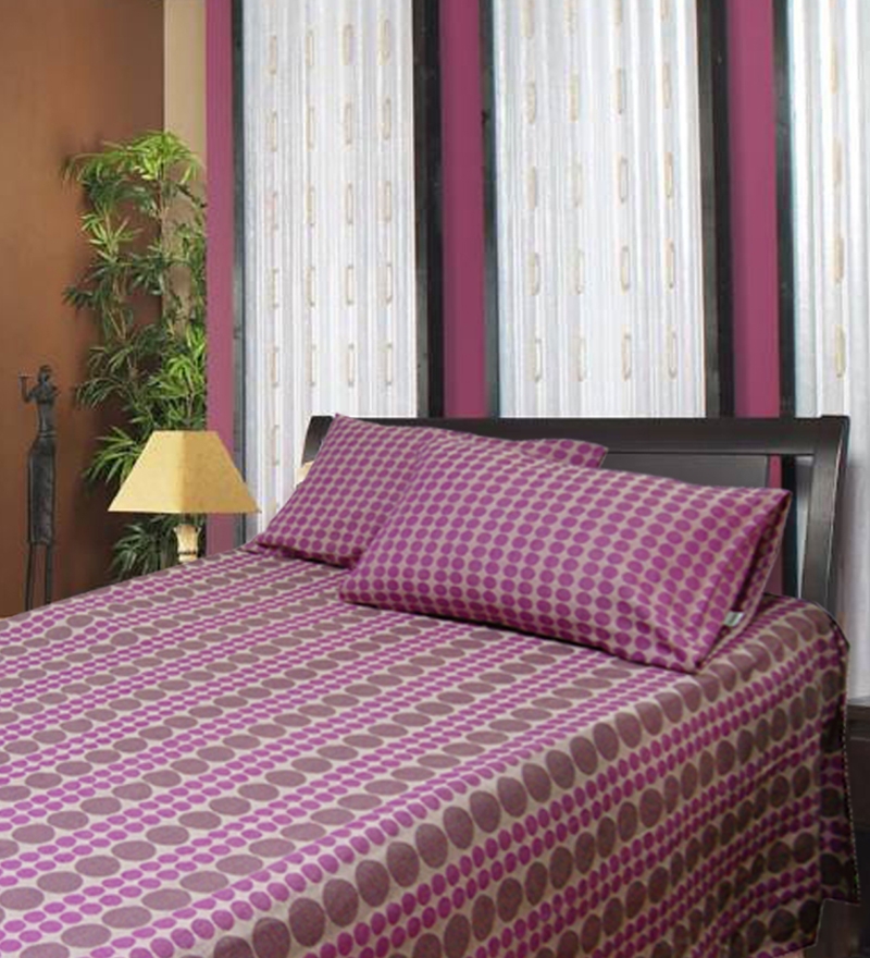 Classic looks with classy edge is what typically defines the presence of this beautiful bed cover in a room. The profusion of purple color fills the atmosphere of the room with a mysterious energy and it feels that someone has created magical environment there. The designer patterns are kept simple so as to match the interiors of every kind of rooms. This bed sheet can be an effectual addition to your homes furnishing linens. We enrich Indian Homes every 45 seconds, making us Indias leading Furniture and Home Furnishings destination. We ship to your door-step for free and all our products come with a 30 Day No- Questions-Asked Money Back Guarantee.