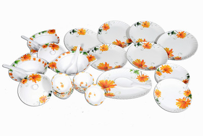 Grace Your Dinner Table With This Stylish And Classy Dinner Set. Attractive Floral Design On Top Of Lids, Bowls And Plates. Flowerware Dinner Set Is Engaged In Offering A Wide Collection Of Melamine Exclusive Dinner Set. The Dinner Set Is Fully Double Coated. No Stain, No Scratch, Shine Forever.