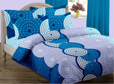 Home Bee Cotton Printed Double Bedsheet 1 Bedsheet, 2 Pillow Covers, Blue||White||Purple- Flipkart Home Decor & Accessories Online