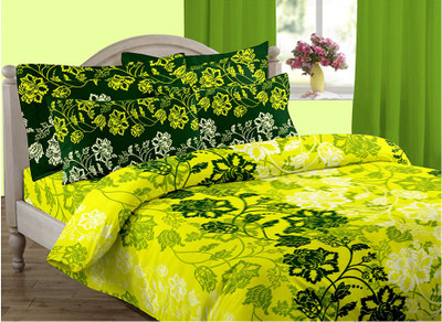Home Bee Cotton Floral Double Bedsheet 2 Pillow Covers, 1 Bedsheet, Green||White- Flipkart Home Decor & Accessories Online