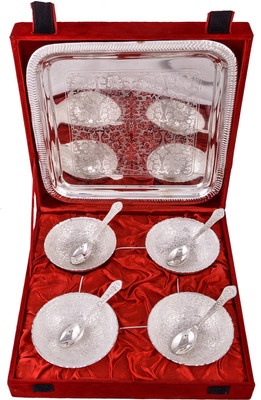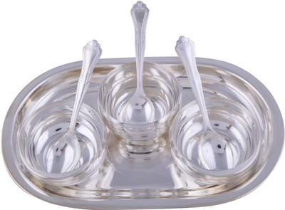 Bowl Set Which Is Widely Used For Storing, Serving And Carrying Food Items. Praised Among Clients For Its Varied Features, Such As Eye Catching Looks, Excellent Finishing And Superb Shine, The Offered Bowl Set Is Manufactured By Our Craftsmen Using High Grade Raw Material. Disclaimer: Product Colour May Slightly Vary Due To Photographic Lighting Sources Or Your Monitor Settings. Note: No Warranty For Silver Coating. Maintenance As These Articles Have A Layer Of Pure Silver Over They Look And Wear Like Pure Silver Articles, The Effects Of The Atmosphere Food On Them Is Also The Same. To Maintain Glossiness, Use Soft Sponge With Warm Soap Solution For Cleaning. If Articles Are Not In Use, They Should Be Completely Dried & Stored In Plastic Bags Use Colgate Tooth Powder When The Tains Are Not Easily Removed By The Above Process