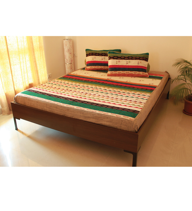 This patch work bed cover is a good way to add color to any bedroom. In stunning colours, rich details and patterns, this is handcrafted by a team of skilled craftsmen. Patch reflects the traditional techniques of India in the modern home decor. The set includes a standard size bed cover with two pillow covers. We enrich Indian Homes every 45 seconds, making us Indias leading Furniture and Home Furnishings destination. We ship to your door-step for free and all our products come with a 30 Day No- Questions-Asked Money Back Guarantee.
