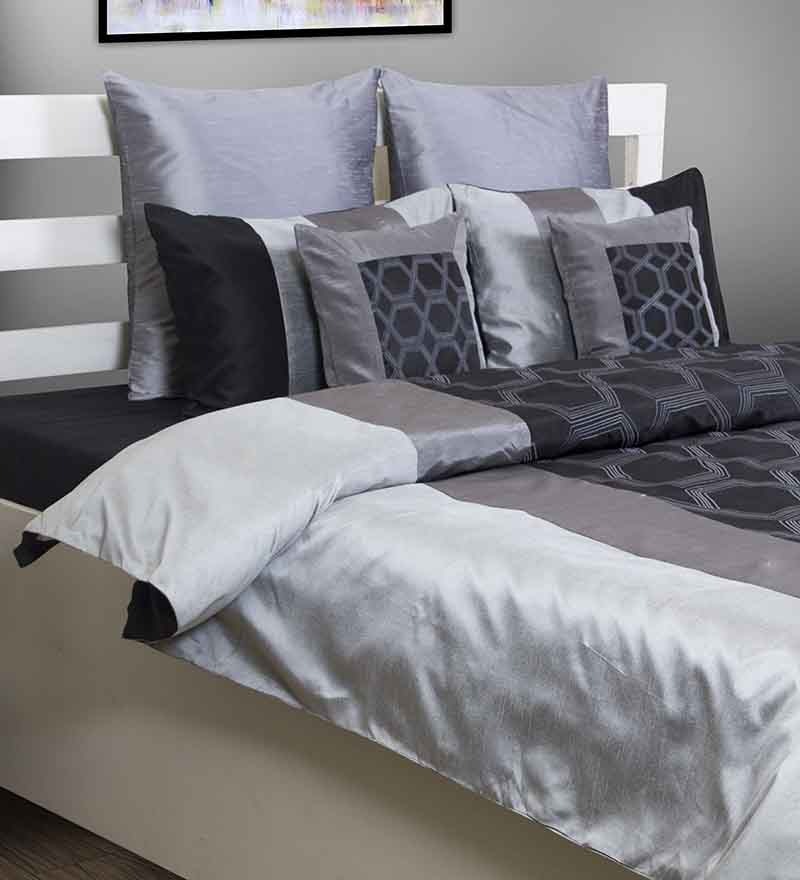 House This Black & Grey Polyester Bedcover Set- Pepperfry Online Shopping