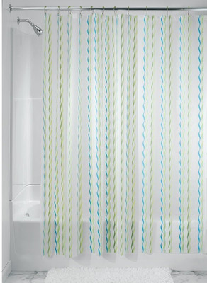 We make it easy. You get the shower curtain and we throw in the coordinating rings. The wiggly shower curtain is retro inspired vertical wave design is printed on frosty peva.