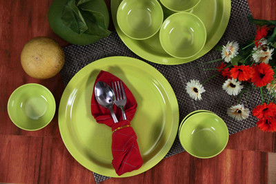 This plain green dinner set is quite a respite from those over the top dinnerware and enhances your crockery collection with its subtle appeal.