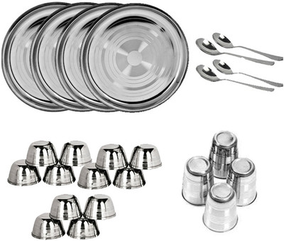 Serve Delicious Meals To Your Family Or Guests On Those Special Occasions In This?6 Pieces Dinner Set. This Dinner Set Features 4 Cutlery Spoon, 12 Bowls, 4 Full Plates And 4 Glass. This Dinner Set Is Constructed Using High Quality Stainless Steel That Makes It Sturdy And Durable For Long. These Stackable Dinner Pieces Are Easy To Clean As They Are Dishwasher-Safe.