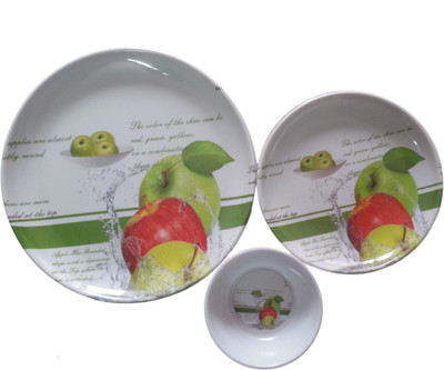 beautiful design 18 pc melamine dinner set includes 6 full plates, 6 halh plates and 6 curry bowls