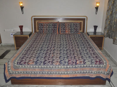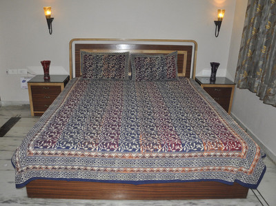 Traditional Bed Sheet in hand block print of Rajasthan. This admiring bed sheet is embellished with intricate hand block print design on cotton base. It is graced with detailed print on all over to give an ethnic yet modern glance. The product presents a good example of traditional craftsmanship of Rajasthan. This good looking fluffy bedspread set is a specialty of Jaipur. The bedspread set is in bright and traditional Rajasthani hand-Block motif prints to enhance your decor.