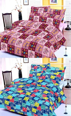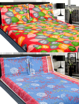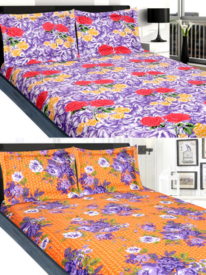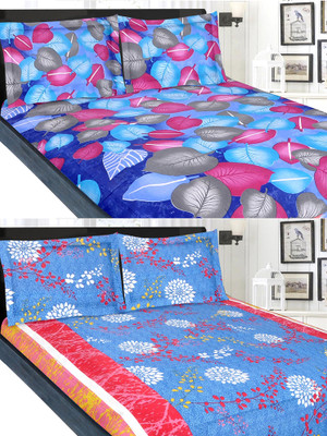 meSleep Cotton Floral Double Bedsheet 2 Double Bed Sheet, 4 Pillow Covers, Multicolor- Flipkart Home Decor & Accessories Online