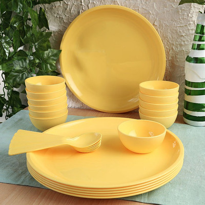 Pebbleyard Sugam presents 'Alladin' dinner set that is an ideal pick to upgrade your tableware. With this set, you can serve delicious dishes to your guests in style. This plastic dinner set is durable and so is worth a buy.