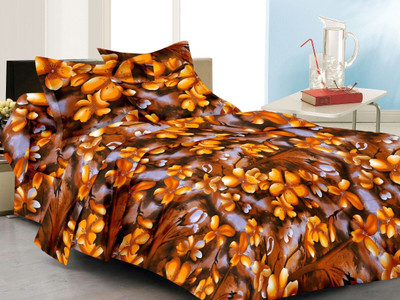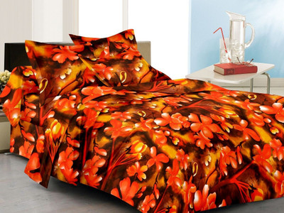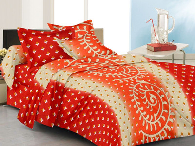 Pipal Cotton Floral Double Bedsheet 1 Bedsheet, 2 Pillow Covers, Orange- Flipkart Home Decor & Accessories Online