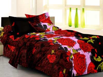 Pipal Cotton Floral Double Bedsheet 1 Bedsheet, 2 Pillow Covers, Black- Flipkart Home Decor & Accessories Online