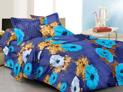 Pipal Cotton Floral Double Bedsheet 1 Bedsheet, 2 Pillow Covers, Blue- Flipkart Home Decor & Accessories Online