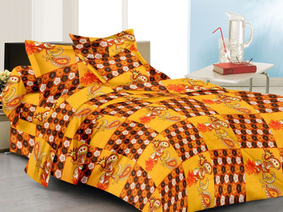 Search Pipal Cotton Floral Double Bedsheet 1 Bedsheet, 2 Pillow Covers, Orange on Amazon