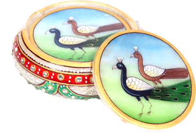ArjaaIndia Round Marble Coaster Set Multicolor, Pack of 6- Flipkart Home Decor & Accessories Online