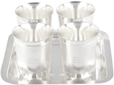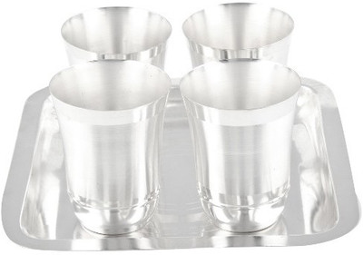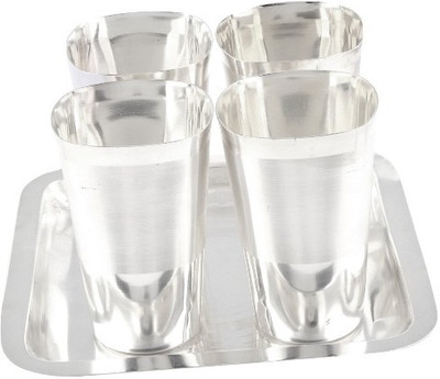 Beautiful silver plated Glass set with tray. A must have accessory for your dining table. Exclusive utility item to serve your guest in style. its A classy gift item for all occasionsand Corporate Gifting. Disclaimer: Product colour may slightly vary due to photographic lighting sources or your monitor settings. Note: No Warranty for Silver Coating.