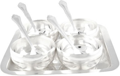 It̢۪s a unique round shaped Silver Plated Bowl Set with tray and spoon which is widely used for storing, serving and carrying food items. its A classy gift item for all occasions like birthday, wedding. Praised among clients for its varied features, such as eye catching looks, excellent finishing and superb shine. Disclaimer: Product colour may slightly vary due to photographic lighting sources or your monitor settings. Note: No Warranty for Silver Coating.