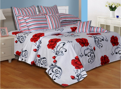 Salona Bichona Cotton Floral Double Bedsheet 1 Bedsheet, 2 Pillow Covers, Red||Grey- Flipkart Home Decor & Accessories Online