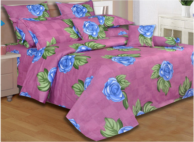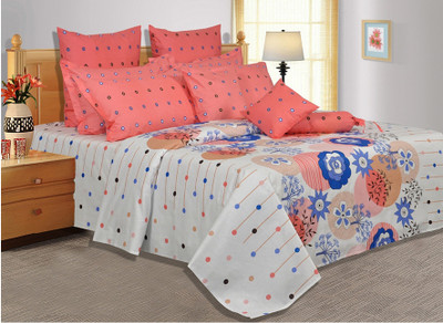 Salona Bichona Cotton Printed Double Bedsheet 2 Pillow Covers, 1 Bedsheet, Blue||Pink||White- Flipkart Home Decor & Accessories Online