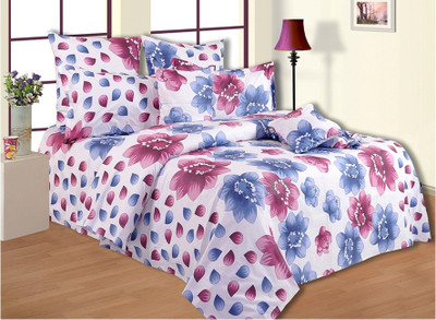 Salona Bichona Cotton Floral Double Bedsheet 2 Pillow Covers, 1 Bedsheet, Purple||Blue||White- Flipkart Home Decor & Accessories Online