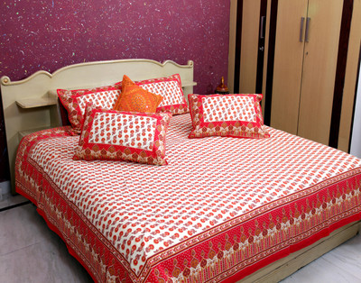 Snehkriti Cotton Printed Double Bedsheet 1 Bedsheet, 2 Pillow Cover, Red- Flipkart Home Decor & Accessories Online