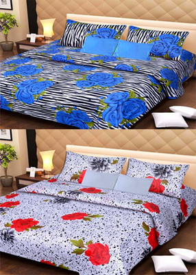 HomeZaara Cotton Printed Double Bedsheet 2 Double Bedsheet, 4 Pillow cover, Multicolor- Flipkart Home Decor & Accessories Online