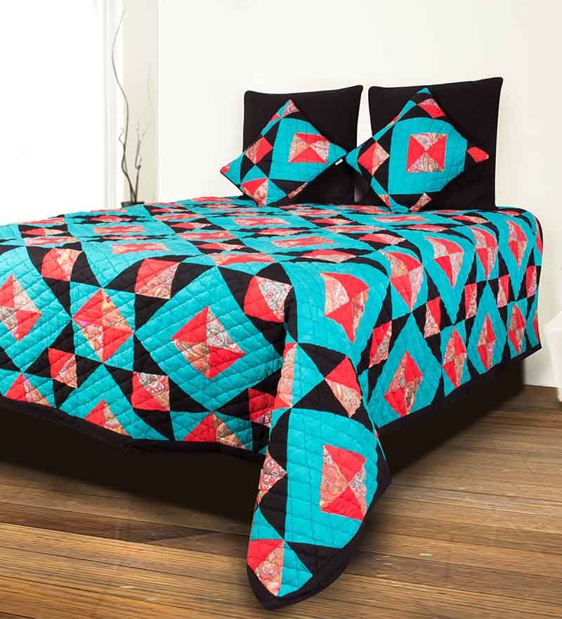 Star Homz Patchwork Quilted Bedcover with Two Cushion Covers- Pepperfry Online Shopping