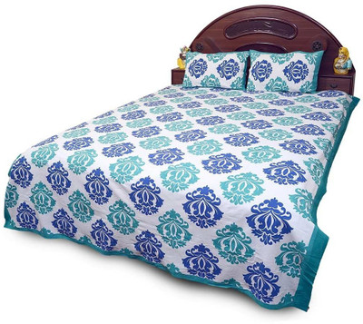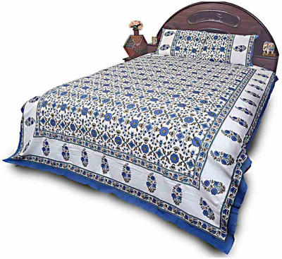 Sunshine Rajasthan Cotton Printed Double Bedsheet 1 Double Bedsheet, 2 Pillow Covers, Blue- Flipkart Home Decor & Accessories Online