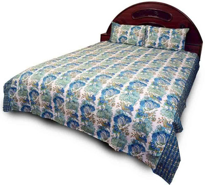 Sunshine Rajasthan Cotton Floral Double Bedsheet 1 Double Bedsheet, 2 Pillow Covers, Green- Flipkart Home Decor & Accessories Online