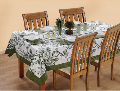 Swayam Printed 6 Seater Table Cover Green, Yellow, White, Cotton- Flipkart Home Decor & Accessories Online