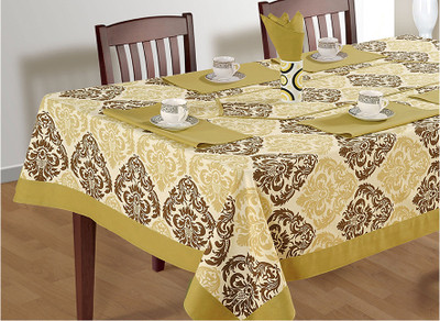 Swayam Printed 6 Seater Table Cover Brown, Beige, Green, Cotton- Flipkart Home Decor & Accessories Online