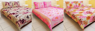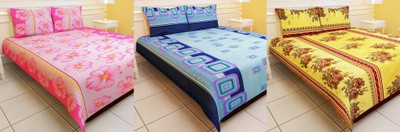 Carah Polyester Printed Double Bedsheet 3 Bedsheet, 6 Pillow Covers, Multicolor- Flipkart Home Decor & Accessories Online