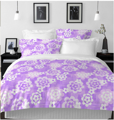 Welhome by Welspun Cotton Floral Double Bedsheet 1 Bedsheet, 2 Pillow Covers, Purple||White- Flipkart Home Decor & Accessories Online