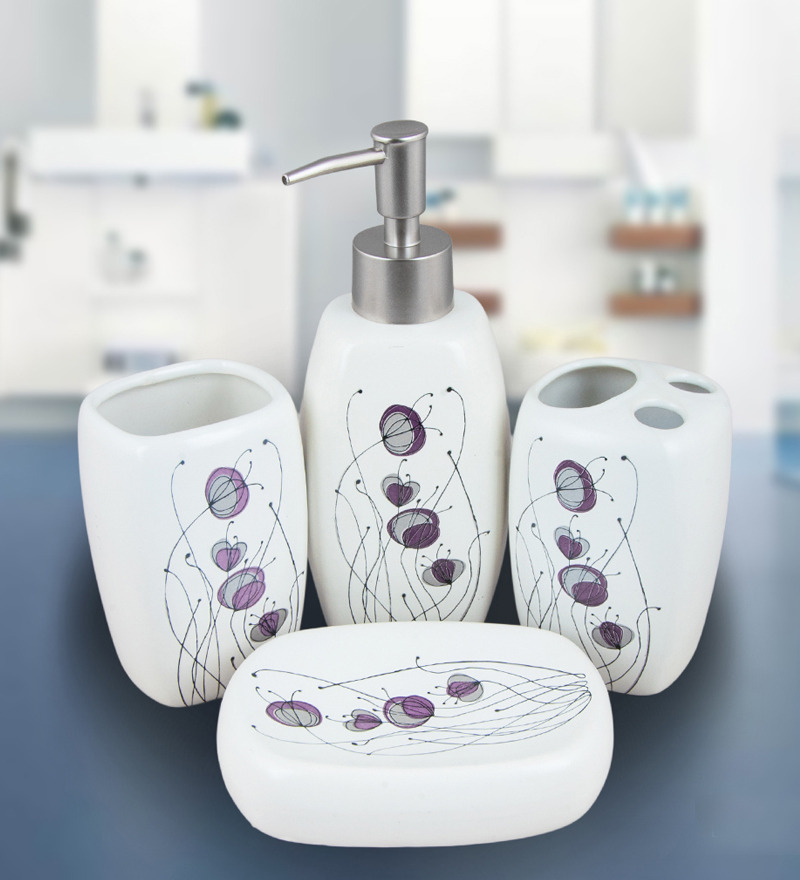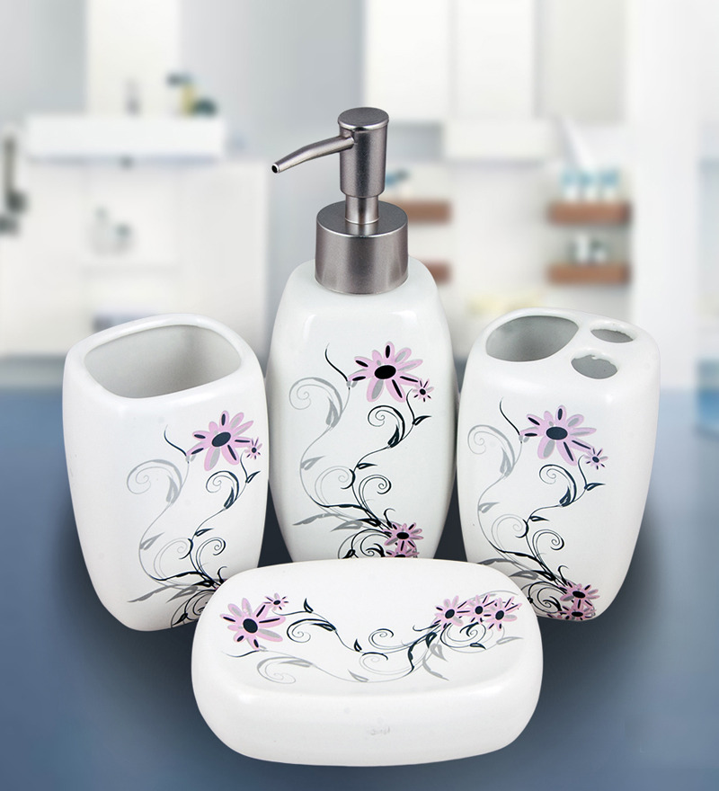 Crafted ceramic bath accessoriesIncludes lotion dispenser, toothbrush holder, soap dish and tumblerDecorated with inspirational words and stylish designsWipe clean with water and soap Lotion dispenser,300ml , (Length) 19cm, . toothbrush holder, (Length) 11.5cm, 250 ml, Soap dish, 9x12x3 cm, Tumbler, (Length)11 cm, 250 ml We enrich Indian Homes every 45 seconds, making us Indias leading Furniture and Home Furnishings destination. We ship to your door-step for free and all our products come with a 30 Day No- Questions-Asked Money Back Guarantee.