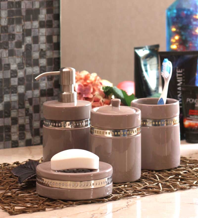Foyer Ceramic Bath Cream Brown Set Of 4- Pepperfry Online Shopping