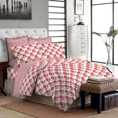 Bombay Dyeing Polycotton Printed Double Bedsheet 2 Pillow Covers, 1 Double Bedsheet, Pink||Orange||White- Flipkart Home Decor & Accessories Online
