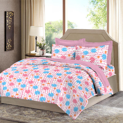 Bombay Dyeing Polycotton Printed Double Bedsheet 1 Double Bedsheet, 2 Pillow Covers, Pink||Blue||Orange- Flipkart Home Decor & Accessories Online