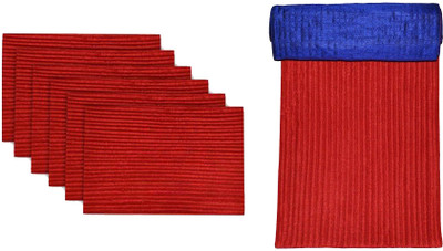StyleNcomfort Red, Blue Dupioni Silk Table Linen Set Pack of 7- Flipkart Home Decor Deals & Discount Coupons