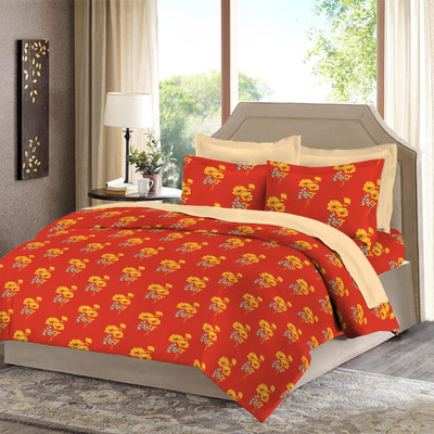 Bombay Dyeing Polycotton Floral Double Bedsheet 1 Double Bedsheet, 2 Pillow Covers, Red||Yellow- Flipkart Home Decor & Accessories Online
