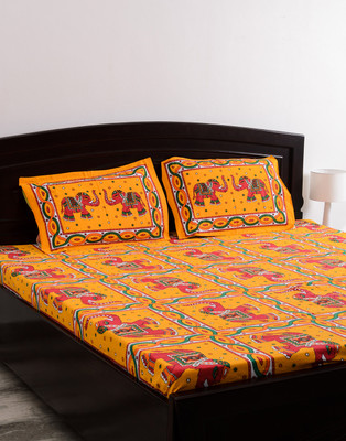 Vivid Rajasthan Cotton Printed Double Bedsheet 1 Bedsheet, 2 Pillow Covers, Yellow- Flipkart Home Decor & Accessories Online