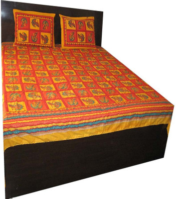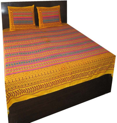 Katha handworked double bedsheet with strong threads design all over. This product represents traditional craftsmanship of Rajasthan. This bedsheet set is in bright color to enhance your d?cor. The bed sheet comes with 2 matching pillow covers.