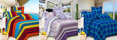 Pack Of 3 Bedsheets In Bright And Cheerful Colors Will Make Your Room Look Lively And Colourful And Will Create A Positive Ambience Of The Room. Dimension 220x240cm 70x50cm Accessories -6pcs Pillow Covers .