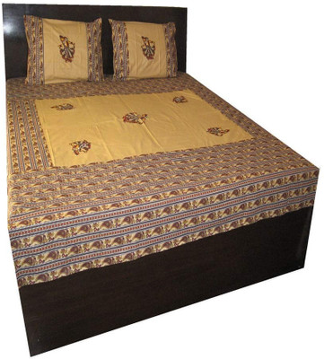 Double bedsheet with patch work design. This product represents traditional craftsmanship of Rajasthan. This bedsheet set is in bright color to enhance your d?cor. The bed sheet comes with 2 matching pillow covers.